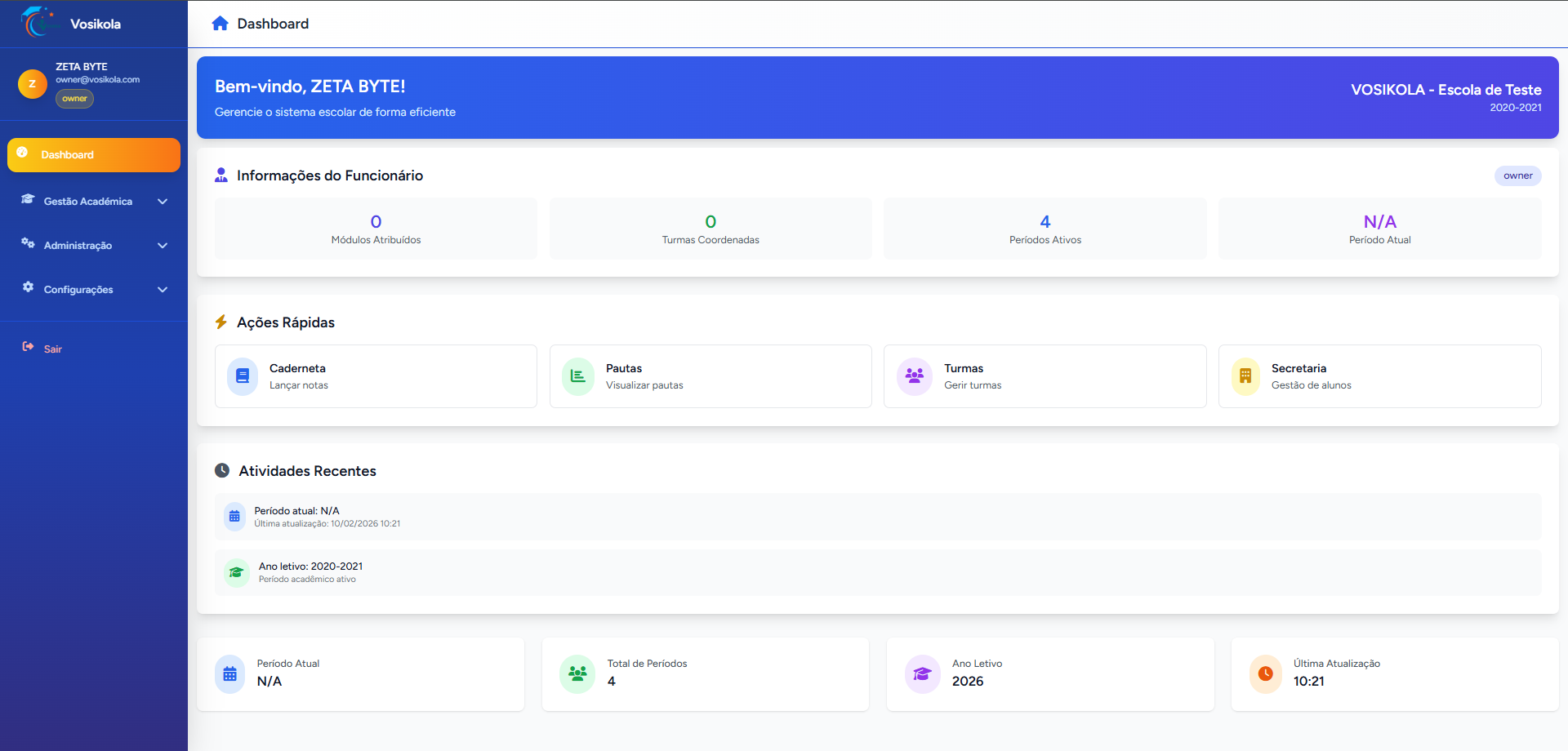 Acesso completo ao sistema para visualizar listas, horários, notas, plano curricular e calendário acadêmico