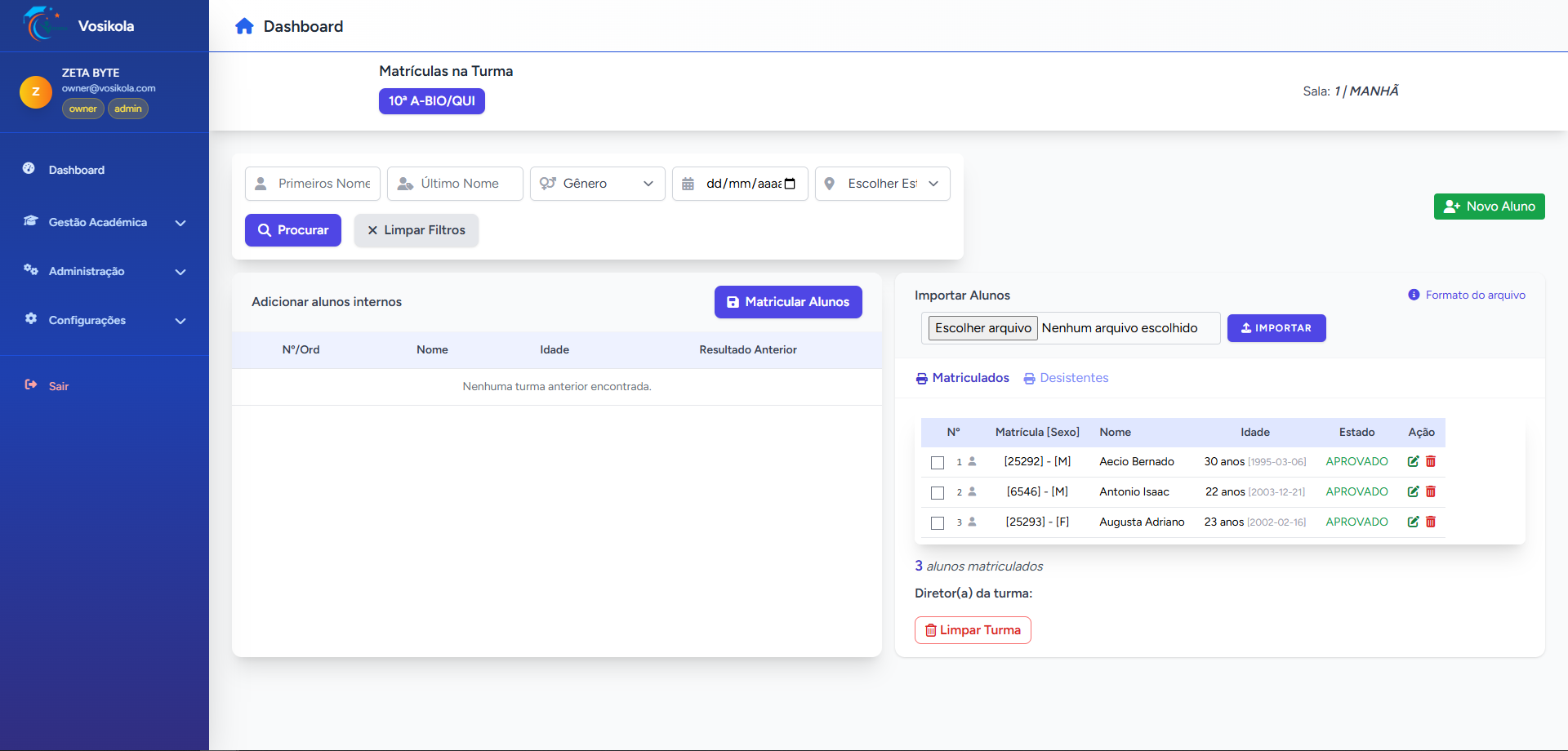 Processamento rápido de matrículas, gestão de desistências, consulta de dados e notas dos estudantes